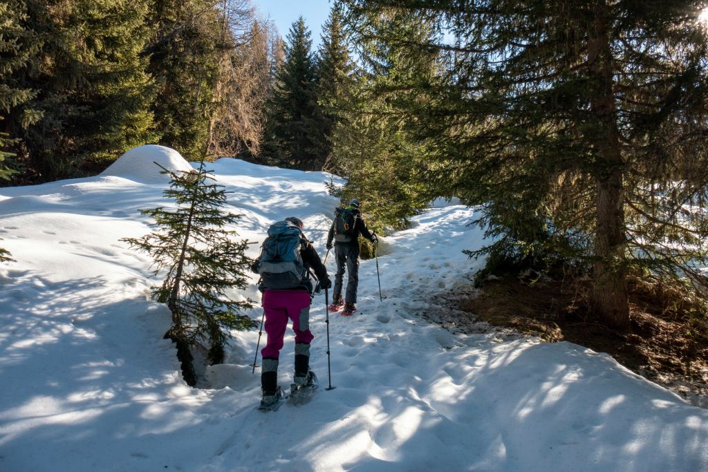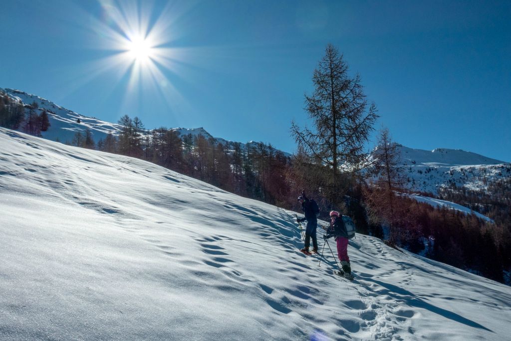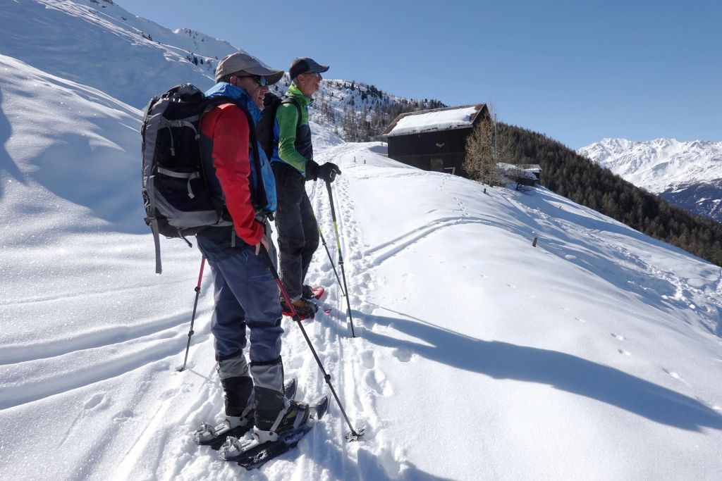Départ à raquette un peu plus haut, aux Mayens de Praz (1640 m) atteint avec la voiture de Stéphane