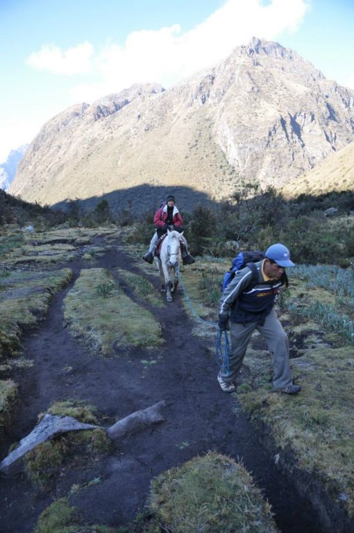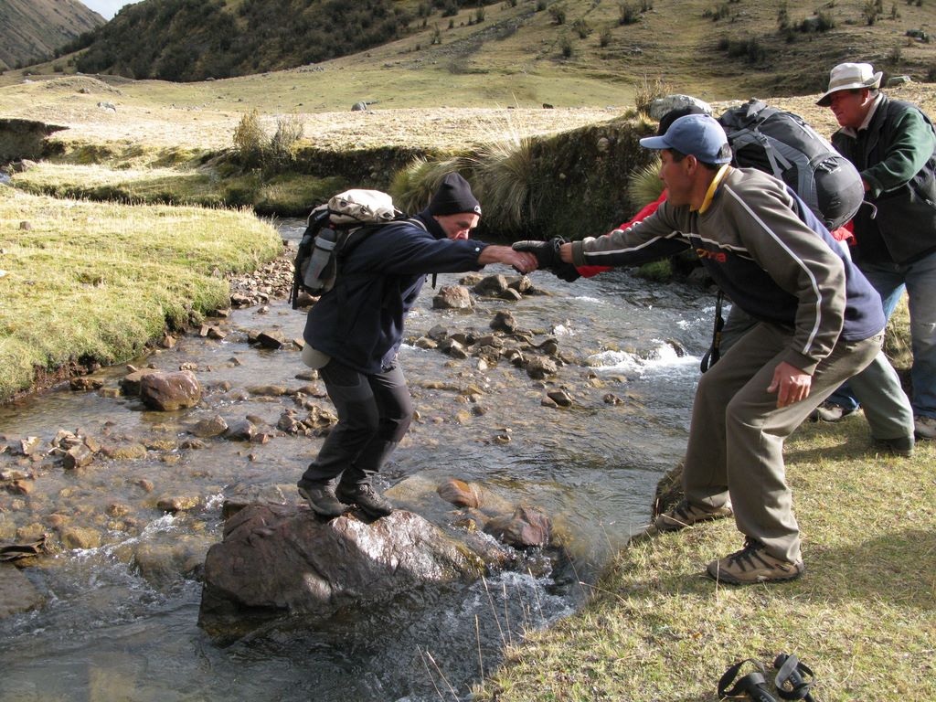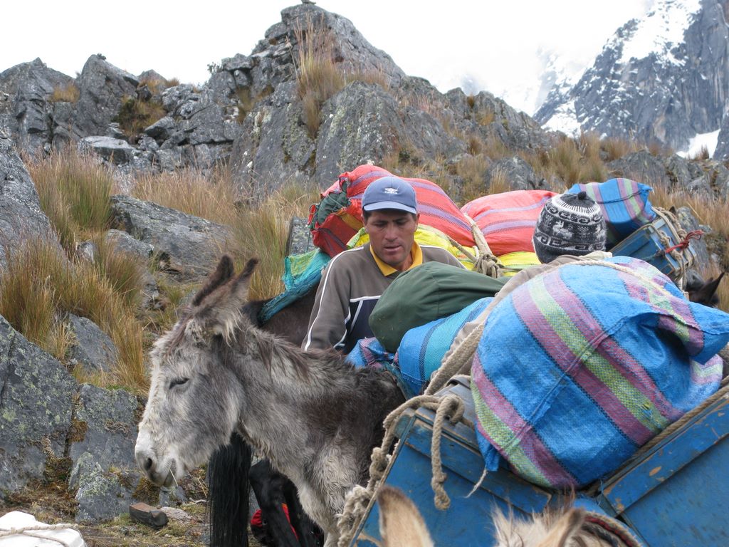 Arrivée au col de Pucaraju (4640 m.) : les marcheurs...