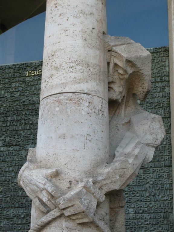 Sculpture : la Flagellation devant le portail central de la Façade de la Passion