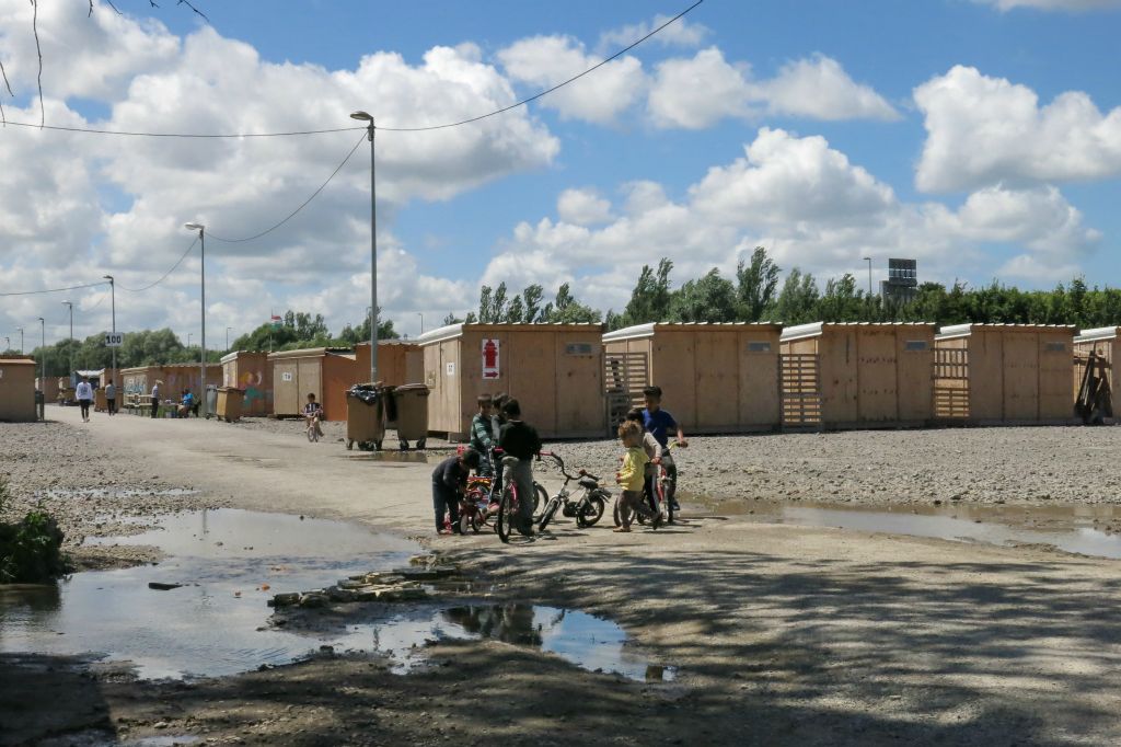 Les migrants ici, habitent des shelters (petit abri de bois de 10m2)